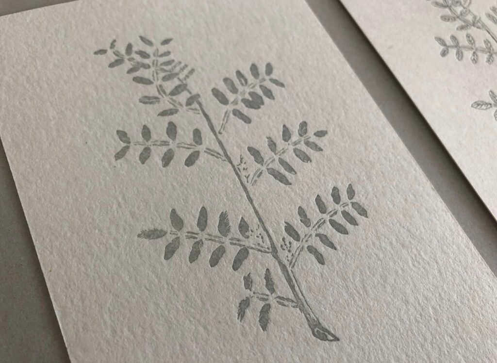 2種類の凸版を使った活版印刷2色刷りによる植物の繊細な陰影の表現を、ぜひお楽しみください。